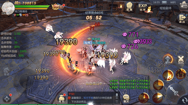 在副本之中,在经验以及铜币副本中,你可以通过鼓舞来增加自己的攻击力,以增加击杀怪物的数量,而通过EXP效率可以增加获得的经验。